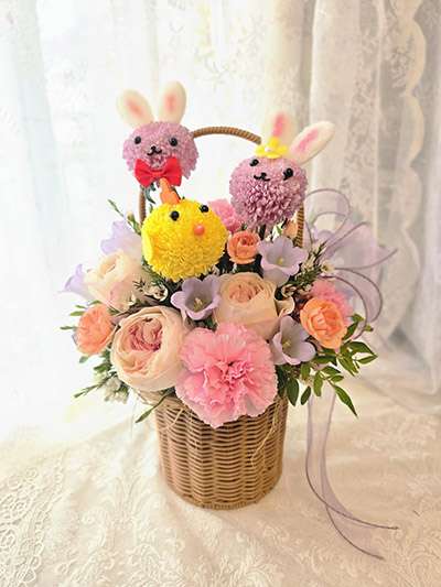 🌸 親手製作「花花兔仔」+「花花雞仔」花籃